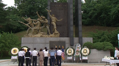 ÇåÈ¿Í ¹¬³äÀ» ¸¶Ä£ÈÄ Âü¼®ÀÚµéÀº UN±º ÃÊÀü±â³ä°üÀ» µ¹¾Æº¸¸ç UN±ºÀÇ °í±ÍÇÑ Èñ»ýÀ» ±â¸®°í È£±¹¾Èº¸ÀǽÄÀ» °íÃëÇÏ´Â ½Ã°£À» °¡Á³´Ù.