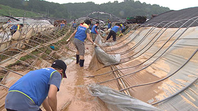 ÇϿ콺 ¾ÈÀ¸·Î ±â½ÀÇÑ ¹° ¶§¹®¿¡ ÇÑÇØ ³ó»ç¸¦ ¸ðµÎ ¸ÁÄ£ ³ó¹Îµé, Áý¾È±îÁö ¾µ¾î³»¸° Æø¿ì·Î ¿È¦´Þ½Ï ÇÒ ¼ö ¾ø°Ô µÈ »ç¶÷µé, ¿©±âÀú±â¼ ¼Õ±æÀ» ¸ð¾Æ ¾î·Á¿òÀ» °Ü¿ì ¸ð¸éÇßÁö¸¸, ¿ÏÀüÈ÷ º¹±¸µÉ ¶§±îÁö´Â ¾ÆÁ÷ µµ¿òÀÌ ¸¹ÀÌ ÇÊ¿äÇÑ »óȲÀÌ´Ù.
