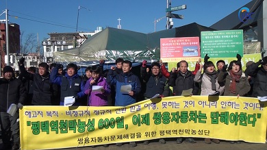 ÆòÅÿª ±¤Àå¿¡ ¼³Ä¡µÈ ½Ö¿ëÀÚµ¿Â÷ ¹®Á¦ ÇØ°áÀ» À§ÇÑ ÆòÅÿª³ó¼º´ÜÀÌ Ãµ¸·³ó¼ºÀå ¾Õ¿¡¼³ó¼º 600ÀÏÀ» ¸Â¾Æ 13ÀÏ ¿ÀÀü 11½Ã ±âÀÚȸ°ßÀ» °¡Á³´Ù.