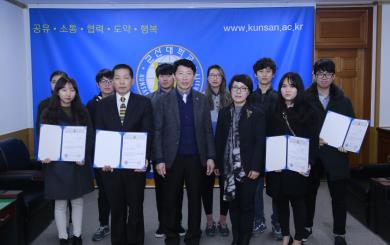 ±º»ê´ëÇб³ ¾ð·Ð»ç°¡ Áö³ 14ÀÏ ±º»ê´ëÇб³ º»ºÎ ÃÑÀå Á¢°ß½Ç¿¡¼ ¡®Á¦ 34ȸ Ȳ·æÇмú¹®ÇÐ»ó¡¯ Çö»ó°ø¸ð ½Ã»ó½ÄÀ» °³ÃÖÇß´Ù.