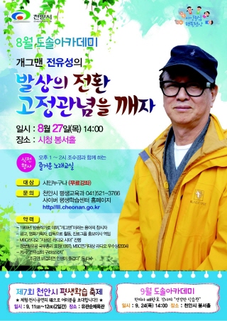 °³±×¸Ç ÀüÀ¯¼º°ú ÇÔ²²ÇÏ´Â 8¿ù µµ¼Ö¾ÆÄ«µ¥¹Ì - õ¾È½Ã, 8¿ù 27ÀÏ ¡®¹ß»óÀÇ Àüȯ °íÁ¤°ü³äÀ» ±úÀÚ¡¯ ÁÖÁ¦ °¿¬ |