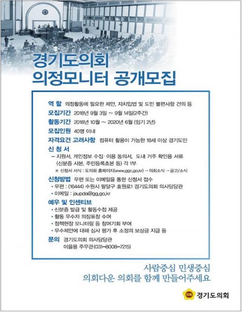 °æ±âµµÀÇȸ, Á¦2±â ÀÇÁ¤¸ð´ÏÅÍ °ø°³ ¸ðÁý - 9¿ù3ÀϺÎÅÍ 14ÀϱîÁö ¸¸ 18¼¼ÀÌ»ó °æ±âµµ¹ÎÀÌ¸é ½Åû °¡´É |