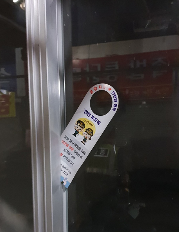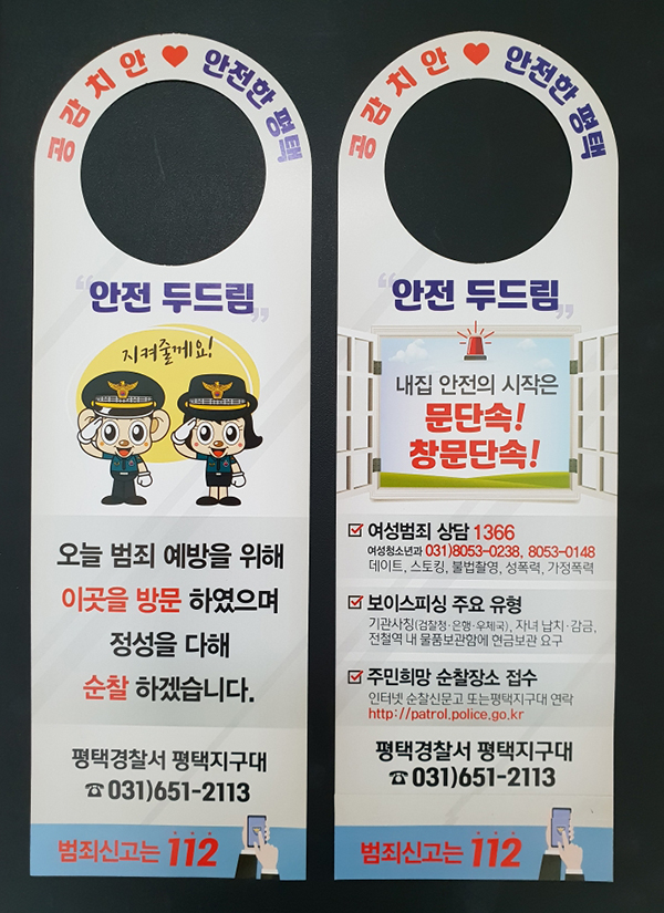¾ÈÀü µÎµå¸² Ä«µå¶õ »çÀü Á¢¼öµÈ ÁֹεéÀÇ ¼øÂûÈñ¸Á Àå¼Ò¸¦ °æÂûÀÌ ¼øÂûÇÑ ÀÌÈÄ ÃâÀÔ¹® µî¿¡ °É¾îµÒÀ¸·Î½á, °æÂûÀÌ Ç×»ó ÁֹΠ¿·¿¡¼ ÁÖ¹ÎÀ» º¸È£Çϰí ÀÖÀ½À» Ç¥½ÃÇÏ´Â Ä«µå´Ù.