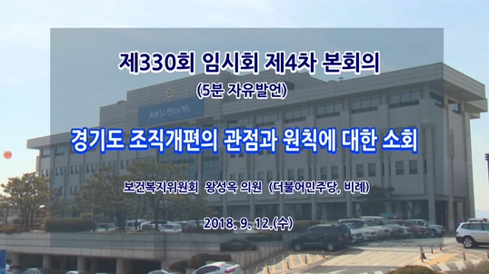 °æ±âµµÀÇȸ Á¦330ȸ ÀÓ½Ãȸ Á¦4Â÷ º»È¸ÀÇ [5ºÐÀÚÀ¯¹ß¾ð] º¸°Çº¹ÁöÀ§¿øÈ¸ ¿Õ¼º¿ÁÀÇ¿ø - °æ±âµµ Á¶Á÷°³ÆíÀÇ °üÁ¡°ú ¿øÄ¢¿¡ ´ëÇÑ ¼Òȸ |