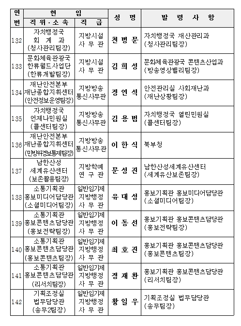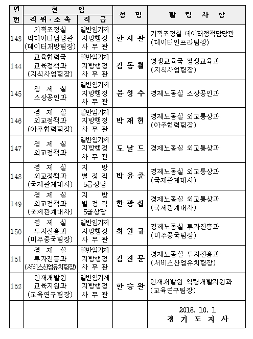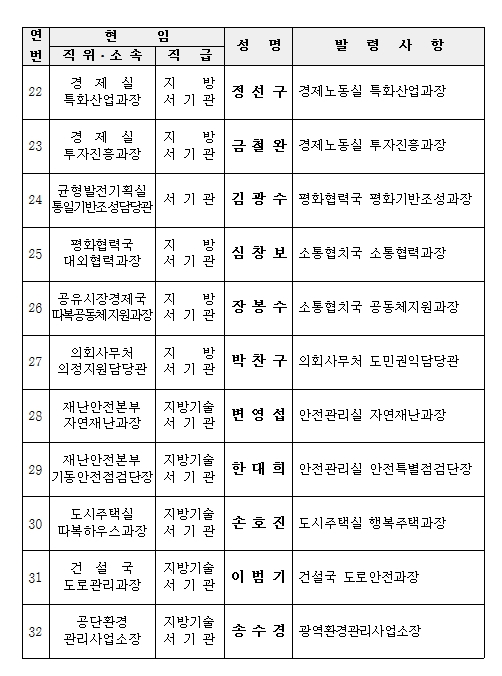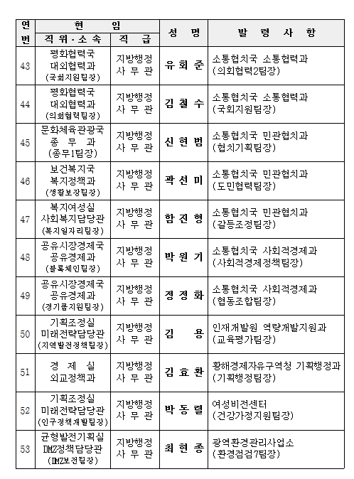 °æ±âµµ°¡ ¹Î¼±7±â ù Á¶Á÷°³Æí¿¡ µû¸¥ Àλ縦 10¿ù 1ÀÏÀÚ·Î ´ÜÇàÇß´Ù.