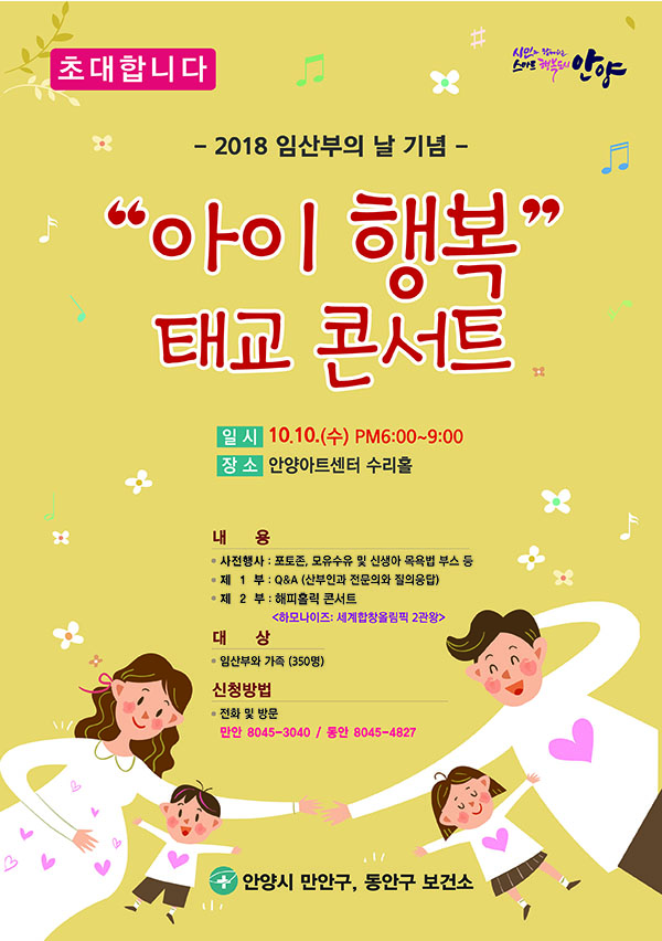 ¾È¾ç½Ã¿¡¼­ ¿À´Â 10ÀÏ ÀÓ»êºÎÀÇ ³¯À» ±â³äÇØ ¡®¾ÆÀÌÇູ¡¯Å±³ Äܼ­Æ®¸¦ °³ÃÖÇÑ´Ù°í ¾Ë·È´Ù. °ø¿¬Àº ¾È¾ç¾ÆÆ®¼¾ÅÍ ¼ö¸®È¦¿¡¼­ ÁøÇàµÈ´Ù.