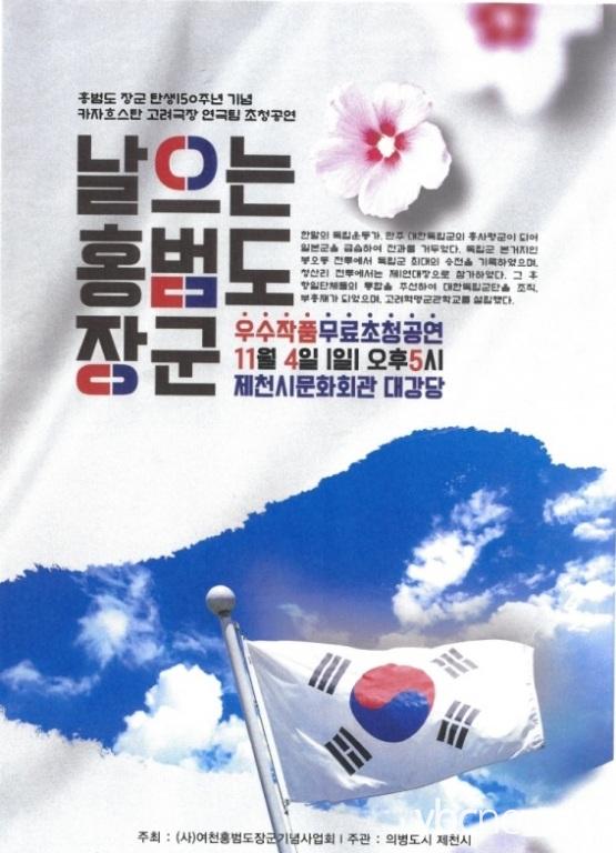 ´ÙÀ½´Þ 4ÀÏ ¿ÀÈÄ 5½Ã ÃæºÏ Á¦Ãµ¹®Èȸ°ü ´ë°ø¿¬Àå¿¡¼ ¿¬±Ø ¡®³¯À¸´Â È«¹üµµ À屺¡¯ÀÌ °ø¿¬µÈ´Ù.