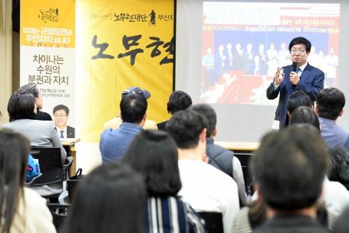 ¿° ½ÃÀåÀº ¡°Áö¿ª°ú ±ÕÇü¹ßÀü, ºÐ±Ç¿¡ ´ëÇÑ ÁøÁöÇÑ °í¹ÎÀ» ½ÃÀÛÇÑ ¶§°¡ ³ë¹«Çö ´ëÅë·É ÀçÀÓ ½ÃÀýÀ̾ú´Ù¡±¸é¼ ¡°°í ³ë¹«Çö ´ëÅë·ÉÀº ¡®¹ÎÁÖÁÖÀÇ ÃÖÈÄÀÇ º¸·ç´Â ±ú¾îÀÖ´Â ½Ã¹ÎÀÇ Á¶Á÷µÈ Èû¡¯À̶ó°í ¸»¾¸Çϼ̴١±°í ¸»Çß´Ù. ÀÌ¾î ¡°¿ì¸®°¡ »ì°í ½ÍÀº µµ½Ã, ¡®»ç¶÷ »ç´Â ¼¼»ó¡¯À» ¸¸µé·Á¸é ³»°¡ ÁÖÀΰøÀ̶ó´Â »ý°¢À» ÇÏ°í ¡®Âü¿©¡¯·Î ³»°¡ »ç´Â Áö¿ªÀ» ¹Ù²ã³ª°¡ÀÚ¡±°í ´çºÎÇß´Ù.