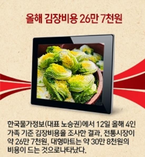 13ÀÏ °¡°ÝÁ¶»ç±â°ü Çѱ¹¹°°¡Á¤º¸ÀÇ Áý°èÁ¶»ç¿¡ µû¸£¸é, ¿ÃÇØ 4ÀÎ °¡Á·(20kg) ±âÁØ ±èÀåºñ¿ëÀº ÀüÅë½ÃÀå 26¸¸ 7000¿ø, ´ëÇü¸¶Æ® 30¸¸ 8000¿øÀ¸·Î ¹àÇôÁ³´Ù. ´ëÇü¸¶Æ®°¡ Àç·¡½ÃÀ庸´Ù ¾à 4¸¸ ¿ø Á¤µµ Àú·ÅÇÑ °ÍÀε¥, ½ÇÁ¦µµ ±×·¯ÇÑÁö ybc´º½º ÃëÀçÁøÀÌ 16ÀÏ ÀüÅë½ÃÀå°ú ¸¶Æ®¸¦ ¹æ¹®Çß´Ù.