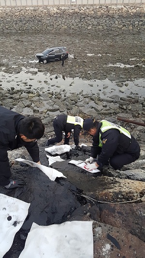 °æÂûÀº »ç°íÂ÷·®ÀÌ ¼ö·Î¿¡ ºüÁö¸é¼ À¯ÃâµÈ ¿£Áø¿ÀÀÏ Á¦°ÅÀÛ¾÷À» ¸¶Ä£ ÈÄ »ç°íÂ÷·®À» À°»óÀ¸·Î °ßÀÎÇß´Ù.