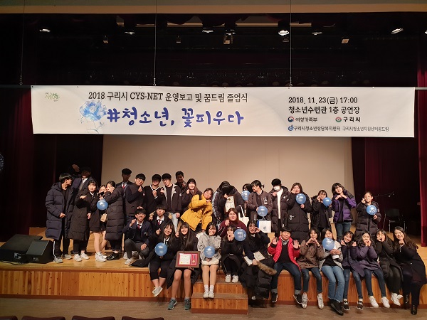 ±¸¸®½Ã¿¡ À§Ä¡ÇÑ Ã»¼Ò³â»ó´ãº¹Áö¼¾ÅÍ´Â Áö³ 11¿ù 23ÀÏ ±¸¸®½Ã û¼Ò³â¼ö·Ã°ü 1Ãþ °ø¿¬Àå¿¡¼ ÇÑ ÇØ¸¦ µ¹¾Æº¸´Â Áö¿ª »çȸ ÅëÇÕ Áö¿ø ü°è(CYS-NET) ¿î¿µ º¸°í ¹× ²Þµå¸² Á¹¾÷½ÄÀÎ ¡®Ã»¼Ò³â ²É ÇÇ¿ì´Ù¡¯ Çà»ç¸¦ °³ÃÖÇß´Ù.