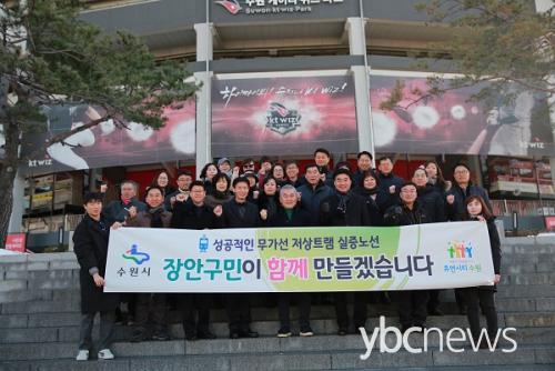 ¼ö¿ø½Ã, ¡®±¹³» 1È£ Æ®·¥ µµ½Ã¡¯ ÇâÇÑ ¹æ¾Æ¼è - ¹é¿î¼® Á¦2ºÎ½ÃÀå°ú ½Ã¹Î 50¿© ¸í, '¹«°¡¼± Àú»óÆ®·¥ ½ÇÁõ³ë¼±' °ø¸ð ½Åû¼ Á¦Ãâ |