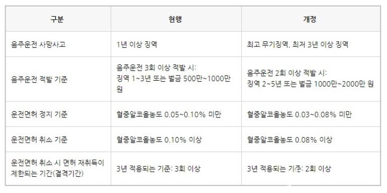 À̹ø Ä·ÆäÀÎÀº Áö³ 18ÀÏ ¡¸Æ¯Á¤¹üÁË °¡Áßó¹ú µî¿¡ °üÇÑ ¹ý·ü¡¹(À±Ã¢È£ ¹ý) ½ÃÇàÀ¸·Î À½ÁÖ ¿îÀü ºÎ»ó»ç°íÀÇ °æ¿ì 10³â ÀÌÇÏ Â¡¿ª ¶Ç´Â 5¹é~3õ¸¸¿ø ¹ú±Ý¿¡¼ 1³â~15³â ¡¿ª ¶Ç´Â 1õ~3õ¸¸¿ø ¹ú±Ý, À½ÁÖ¿îÀü »ç¸Á»ç°íÀÇ °æ¿ì 1³â ÀÌ»ó ¡¿ª¿¡¼ ¹«±â ¶Ç´Â 3³â ÀÌ»ó ¡¿ªÀ¸·Î ó¹úÀÌ °ÈµÊ¿¡ µû¶ó,