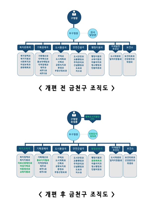 ¾Æ¿ï·¯, ¾÷¹« Á¦ÀÚ¸® ã±â¸¦ ÅëÇØ È¿À²¼ºÀ» ±Ø´ëÈÇÑ´Ù. ±âÁ¸ 3°³ºÎ¼·Î Èð¾îÁ®ÀÖ´ø ½º¸¶Æ®µµ½ÃÆÀ, Á¤º¸Åë½ÅÆÀ, Àü»ê°ü¸®ÆÀÀº È«º¸µðÁöÅаú 1°³ ºÎ¼·Î ¸ðÀº´Ù. µµ½Ã³ó¾÷ÆÀÀº °ø¿ø³ìÁö°ú·Î »çȸÀû°æÁ¦ÆÀÀº Áö¿ª°æÁ¦°ú·Î Àç¹èÄ¡ÇÑ´Ù.