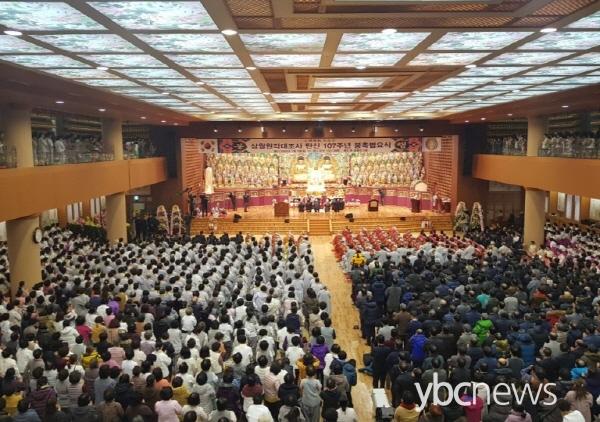 À̳¯ À̹®´ö Ãѹ«¿øÀå ½º´ÔÀº ºÀÃà»ç¿¡¼ "¿À´Ã ´ëÁ¶»ç´ÔÀÇ Åº½Å 107ÁÖ³âÀ» ºÀÃàÇÏ¸ç ¸ðµç Á¾µµ°¡ ÀϽÉÀ¸·Î ´ëÁ¶»ç´ÔÀÇ ±¤È°ÇϽŠ¿ø·ÂÀ» ´õ¿í °Ç½ÇÈ÷ ¹è¿ì°í ÀüÇÏ¸ç ±¹¿îÀ» À¶Ã¢ÄÉ ÇÏ¿© ÀηùÀÇ Æòȸ¦ À̲ø ¼ö Àֱ⸦ ±â¿øÇÑ´Ù"°í »ó¿ù¿ø°¢´ëÁ¶»ç ź½ÅÀÇ Àǹ̸¦ ¼³¸íÇß´Ù.