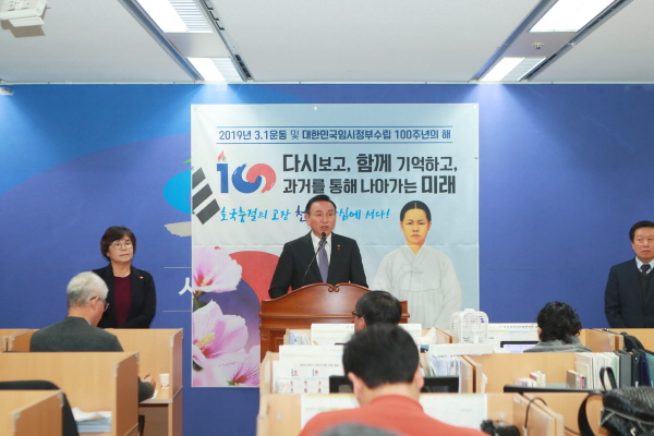 ±¸º»¿µ ½ÃÀåÀº 9ÀÏ ½Ãû ºê¸®Çνǿ¡¼ ¿ÃÇØ 3.1¿îµ¿ ¹× ´ëÇѹα¹ ÀÓ½ÃÁ¤ºÎ ¼ö¸³ 100ÁÖ³âÀ» ¸Â¾Æ Áö¿ª 3.1¿îµ¿ ÀçÁ¶¸í µî ¿ª»çÀû ÀÇÀÇ °è½Â, Á¤Ã¼¼º È®º¸¸¦ À§ÇÑ ±â³ä»ç¾÷ ÃßÁø °èȹÀ» ¹ßÇ¥Çß´Ù.