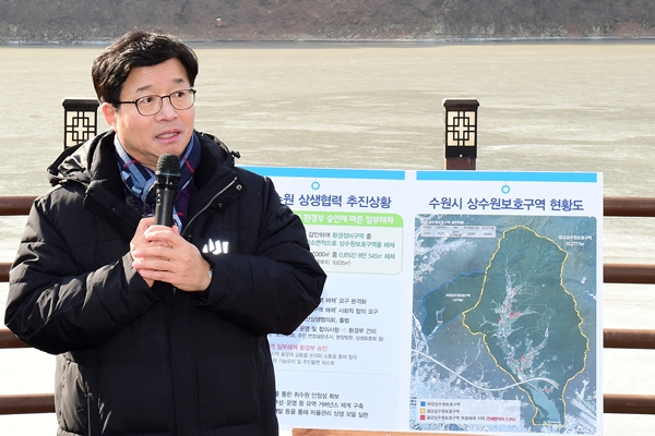 ¿°Å¿µ ½ÃÀåÀº 16ÀÏ ±¤±³Àú¼öÁö ¼öº¯»êÃ¥·Î¿¡¼ ¿¸° ½Å³â ±âÀÚ°£´ãȸ¿¡¼ ¡®±¤±³»ó¼ö¿øº¸È£±¸¿ª ÀÏºÎ ÇØÁ¦¡¯¸¦ ¾ð±ÞÇÏ¸ç ¡°½Ã¹ÎÀÇ ÈûÀ¸·Î ȯ°æ º¸Àü°ú ±ÔÁ¦ ¿Ïȸ¦ ÇÔ²² ÀÌ·ï³½ ÃÖÃÊÀÇ »ç·Ê¡±¶ó°í ¸»Çß´Ù.