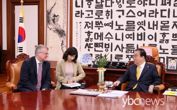 ¹®Èñ»ó ±¹È¸ÀÇÀåÀº 1¿ù 18ÀÏ(±Ý) ¿ÀÈÄ ÀÇÀå Áý¹«½Ç¿¡¼ »çÀÌ¸Õ ½º¹Ì½º (Simon Smith) ÁÖÇÑ¿µ±¹´ë»çÀÇ ¿¹¹æÀ» ¹Þ°í ȯ´ãÇß´Ù.