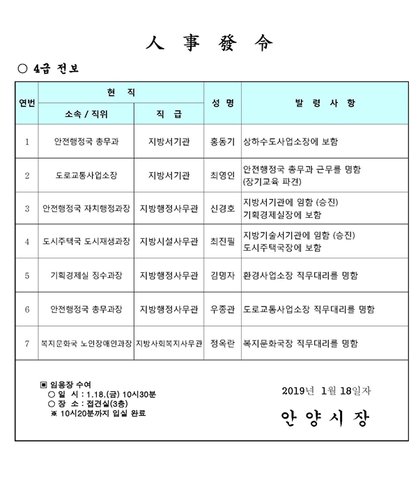 ¾È¾ç½ÃÀλç 4±Þ Àüº¸(19. 1. 18)