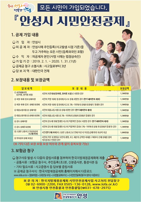 ¾È¼º½Ã°¡ Çѱ¹Áö¹æÀçÁ¤°øÁ¦È¸ÀÇ ½Ã¹Î¾ÈÀü°øÁ¦¿¡ °¡ÀÔÇÏ¿©, ¿¹»óÄ¡ ¸øÇÑ »ç°í·Î ÀÎÇØ ½ÅüÀû ÇÇÇØ¸¦ ÀÔÀº ¾È¼º ½Ã¹Î ¸ðµÎ °øÁ¦ ÇýÅÃÀ» ¹ÞÀ» ¼ö ÀÖ°Ô µÇ¾ú´Ù.