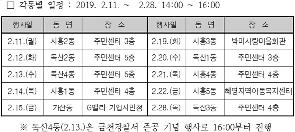 °¢ µ¿º° Çà»ç ÁøÇàÀº ¸¶À»ÀÇÁ¦ µî ¡®µ¿Á¤ ¾÷¹«º¸°í¡¯, ¡®ÁÖ¿ä Çö¾È»ç¾÷ ¼³¸í¡¯, ¡®ÁÖ¹ÎÀÇ°ß Ã»Ã롯 ¼øÀ¸·Î µ¿ÀåÀÌ ÁøÇàÇÑ´Ù.