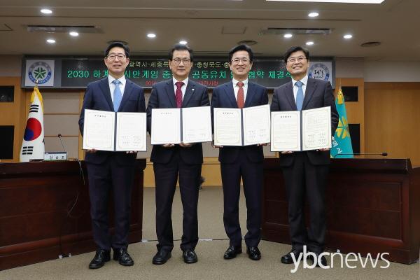 ÃæÃ»±Ç 4°³ ½Ã・µµ(´ëÀü・¼¼Á¾・ÃæºÏ・Ãæ³²)´Â 7ÀÏ ¿ÀÀü 11½Ã 20ºÐ ´ëÀü½Ãû¿¡¼ 2030 ÇÏ°è¾Æ½Ã¾È°ÔÀÓ °øµ¿À¯Ä¡¸¦ À§ÇÑ ¾÷¹«Çù¾àÀ» ü°áÇß´Ù.