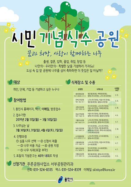 Âü¿© ½Ã¹ÎµéÀº ¿ëÀÎÁß¾Ó°ø¿øÀ» ºñ·ÔÇØ ư½Ï, ¼Ãµ, °³², ±âÈïÈ£¼ö, ÀÚÀº, ¼öÁöüÀ°, ½ÅºÀüÀ°, µ¿¸·, ¼ÒºÀ½£¼Ó µî 10°³ °ø¿ø¿¡¼ 3¿ù 30~31Àϰú 4¿ù 6~7ÀÏ ÁÖ¸»µ¿¾È ÀÚ½ÅÀÇ À̸§À¸·Î ³ª¹«¸¦ ½É°Ô µÈ´Ù.