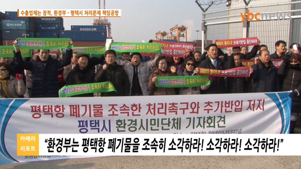 ¼ÆòÅÃȯ°æÀ§¿øÈ¸, ÆòÅÃȯ°æ½Ã¹ÎÇൿ µî 15°³ ´Üü´Â 12ÀÏ ¿ÀÀü ÆòÅᤴçÁøÇ× ÄÁÅ×À̳ÊÅ͹̳Π¿î¿µ¾÷ü(PCTC) Á¤¹® ¾Õ¿¡¼ Áýȸ¸¦ ¿°í ¡°ÆòÅÃÇ× Æó±â¹°ÀÇ Á¶¼ÓÇÑ Ã³¸®¸¦ Ã˱¸Çϰí Ãß°¡ Æó±â¹° ¹ÝÀÔÀ» ÀúÁöÇÑ´Ù"°í ¹àÇû½À´Ï´Ù.