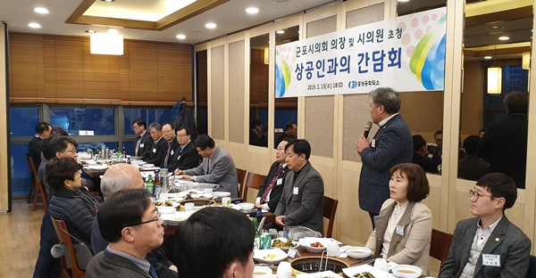 ±ºÆ÷½ÃÀÇȸ(ÀÇÀå À̰ßÇà)´Â 13ÀÏ ±ºÆ÷»ó°øÈ¸ÀǼÒ(ȸÀå ÇÑÁ¤¼ö) ÃÊûÀ¸·Î ȸÀå´Ü°ú °£´ãȸ¸¦ °®°í »ó°øÀεéÀÇ ¾Ö·Î¡¤°ÇÀÇ»çÇ×À» ûÃëÇÏ´Â ¼ÒÅëÀÇ ½Ã°£À» °¡Á³´Ù.