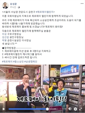 ÀÌ¿¡, À¯¼ºÈÆ ±¸Ã»ÀåÀº ½ÃÈﵿ¿¡ ¼ÒÀç ÇÑ ¡®³ªµé°¡°Ô¡¯¿¡¼ Á÷Á¢ Á¦·ÎÆäÀÌ·Î °áÁ¦ÇÏ´Â ¸ð½ÀÀ» ´ãÀº ¿µ»óÀ» ÀÚ½ÅÀÇ SNS¿¡ ¿Ã·È´Ù.