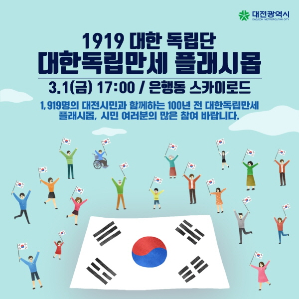 ´ëÀü½Ã, 3¡¤1¿îµ¿ 100Áֳ⠽ùΠÇ÷¡½Ã¸÷ ¡®1919 ´ëÇѵ¶¸³¸¸¼¼¡¯ - 1ÀÏ ¿ÀÈÄ 5½Ã À¸´ÉÁ¤À̰Ÿ®¼ ±â¹Ìµ¶¸³¼±¾ð¼ ÇÔ²² ³¶µ¶, ¹®È°ø¿¬ µî ¿·Á |
