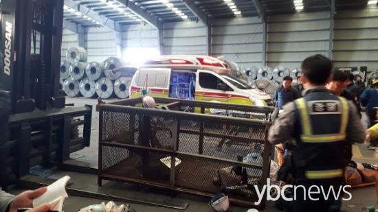 °æÂûÀº À̳¯ ÀÏ¿ëÁ÷ ±Ù·ÎÀÚÀÎ A ¾¾ µî ¼ºÀÎ ³²¼º 6¸íÀÌ ¹°°Ç¸¸ ½ÇÀ» ¼ö ÀÖ°Ô µÅ ÀÖ´Â Áö°ÔÂ÷ Æ÷Å© À§ °¡·Î 1.2m, ¼¼·Î 1.5m öÁ¦¹Ú½º¿¡ ÇѲ¨¹ø¿¡ ¿Ã¶óŸ ÀÛ¾÷À» ÇÏ´ø Áß ¹«°ÔÁß½ÉÀ» ÀÒ°í 4m ³ôÀÌ¿¡¼­ Ãß¶ôÇÑ °ÍÀ¸·Î º¸°í ÀÖ´Ù.