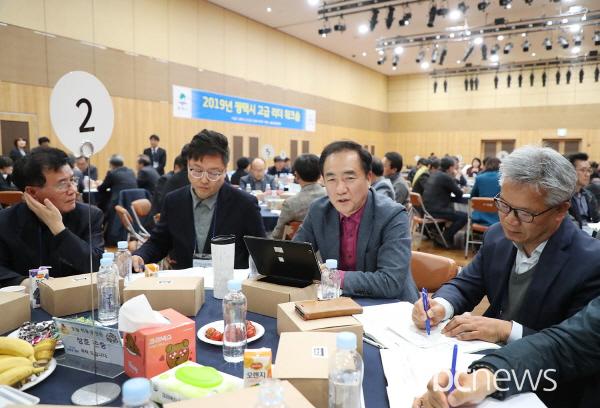 Á¤Àå¼± ½ÃÀåÀº ¡°°£ºÎ°ø¹«¿øµéÀÇ ¿ì¸®½Ã ¹Ì·¡ ºñÀü°ú ½ÃÁ¤ ÇÙ½É °úÁ¦¿¡ ´ëÇÑ ¿Ã¹Ù¸¥ ÀνÄÀ̾߸»·Î Áö¼Ó°¡´ÉÇÑ µµ½Ã ¹ßÀüÀÇ °¡Àå Áß¿äÇÑ °ü°ÇÀÌ¸ç ¿øµ¿·Â¡±À̶ó°í °Á¶Çϸç, ¡°Àα¸ 50¸¸¸íÀ» µ¹ÆÄÇÏ´Â ¿ÃÇØ¸¦ ÅÍ´× Æ÷ÀÎÆ®·Î »ï¾Æ ¹Ì·¡ ¹ßÀüÀü·«ÀÇ ÀçÁ¤¸³°ú ½ÃÁ¤°úÁ¦ÀÇ Çõ½ÅÀûÀÎ ÃßÁø¿¡ ¹ÚÂ÷¸¦ °¡ÇØ »õ·Î¿î ÆòÅà °Ç¼³¿¡ °¡½ÃÀûÀÎ ¼º°ú¸¦ ÀÌ·ç¾î¾ß ÇÑ´Ù¡±°í ÁÖ¹®Çß´Ù.