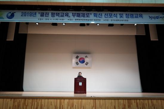 °æ±âµµÆòÅñ³À°Áö¿øÃ»(±³À°Àå ¾ç¹ÌÀÚ)Àº 11ÀÏ ÆòÅúϺι®È­¿¹¼úȸ°ü¿¡¼­Çб³Àå, ±³À°ÇàÁ¤½ÇÀå, ±³À°Áö¿øÃ» ¹× Á÷¼Ó±â°ü Á÷¿ø µî 400¿© ¸íÀÌ Âü¼®ÇÑ °¡¿îµ¥ ¡®Å¬¸° ÆòÅñ³À°, ºÎÆÐÁ¦·Î È®»ê ¼±Æ÷½Ä¡¯À» °³ÃÖÇß´Ù.