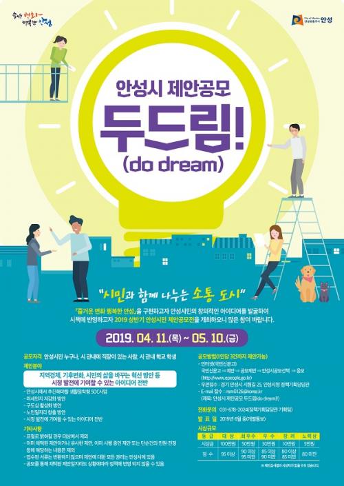 ¾È¼º½Ã, 2019 »ó¹Ý±â Á¦¾È°ø¸ð µÎµå¸²(do dream)! °³ÃÖ - ½Ã¹Î°ú ÇÔ²² ³ª´©´Â ¼ÒÅë µµ½Ã ½ÇÇöÀ» À§ÇÑ ¾È¼º½Ã Á¦¾È°ø¸ð °³ÃÖ |