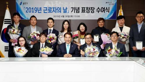 ¿ëÀνÃ, '±Ù·ÎÀÚÀÇ ³¯' ¸Â¾Æ ³ë»ç°ü°è¿Í »ý»ê¼º¿¡ ±â¿©ÇÑ ±Ù·ÎÀÚ 12¸í¿¡°Ô ǥâÀå ¼ö¿© - ¹é±º±â ¿ëÀνÃÀå, "½Å¼ºÇÑ ³ëµ¿ÀÇ °¡Ä¡ Á¸ÁߵǾßÇØ" |