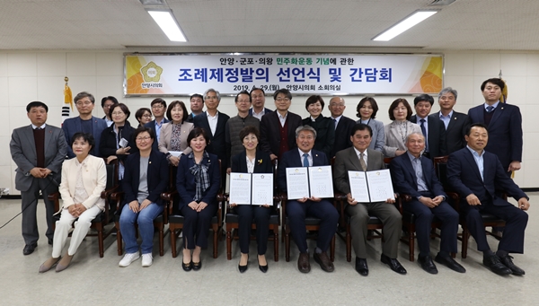 À̳¯ ¼±¾ð½Ä¿¡´Â ¾È¾ç½ÃÀÇȸ ´õºÒ¾î ¹ÎÁÖ´ç ÃÖ¿ì±Ô ´ëÇ¥, ±ºÆ÷½ÃÀÇȸ À̰ßÇà ÀÇÀå, ÀǿսÃÀÇȸ À±¹Ì±Ù ÀÇÀåÀ» ºñ·ÔÇØ, ¾È¾ç½ÃÀÇȸ ÃÖº´ÀÏ ÀÇ¿ø°ú 3°³ ½ÃÀÇȸ ½ÃÀÇ¿øµé, ¾È¾ç ±ºÆ÷ ÀÇ¿Õ ¹ÎÁÖȿ±â³ä»ç¾÷ȸ Á¤±Ýä ÀÌ»çÀåÀ» ºñ·ÔÇÑ ½Ã¹Î´Üü °ü°èÀÚ µî ¾à 50¿©¸íÀÌ Âü¼®Çß´Ù.