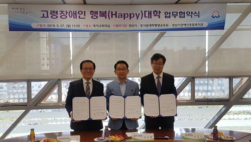 5¿ù 7ÀÏ ¿ÀÈÄ 3½Ã ½Ãû 5Ãþ º¹Áö±¹ ȸÀǽǿ¡¼­ ¼º³²½Ã(½ÃÀå Àº¼ö¹Ì)¿Í µ¿¼­¿ï´ëÇб³, ¼º³²½ÃÀå¾ÖÀÎÁ¾ÇÕº¹Áö°üÀº ¡®°í·É Àå¾ÖÀÎ Æò»ý±³À° Áö¿ø¿¡ °üÇÑ ¾÷¹« Çù¾à¡¯À» Çß´Ù.