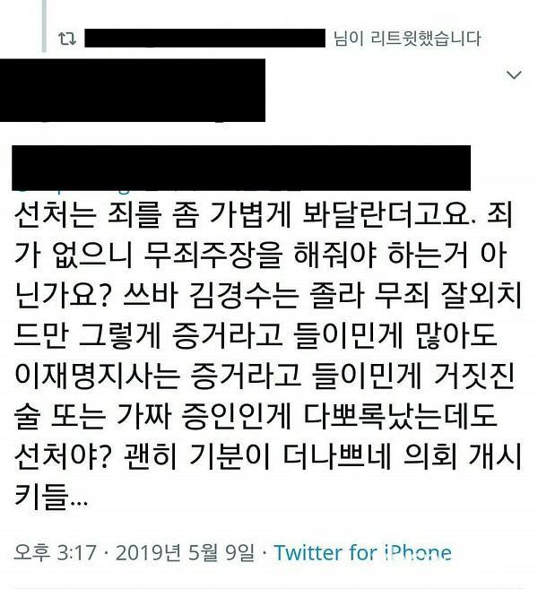 ÇÑ ´©¸®²ÛÀº ¡®¼±Ã³¡¯¶ó´Â ¿ë¾î°¡ Á˸¦ Á» °¡º±°Ô ºÁ´Þ¶ó´Â Àǹ̶ó¸ç Á˰¡ ¾øÀ¸¸é ¹«ÁËÁÖÀåÀ» ÇØ¾ß ÇÏ´Â °Í ¾Æ´Ï³Ä?°í °Á¶Çϸç Áö³ ±è°æ¼öÁö»ç ÀçÆÇ´ç½Ã ÇØ´ç µµÀÇ¿øµéÀÌ ¹«Á˼±°í¸¦ ¿ä±¸Çß´ø °Í°ú ºñ±³ÇÏ¸ç ºÒÄèÇØ Çß´Ù.