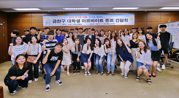 < Áö³­ÇØ ¿©¸§¹æÇÐ ´ëÇлý ¾Æ¸£¹ÙÀÌÆ®¿¡ Âü¿©ÇÑ Ã»³âµéÀÌ ±¸Ã»Àå°ú ¸¸³²ÀÇ ½Ã°£À» °¡Áø ÈÄ ÇÔ²² ±â³ä»çÁøÀ» ÃÔ¿µÇϰí ÀÖ´Ù>
