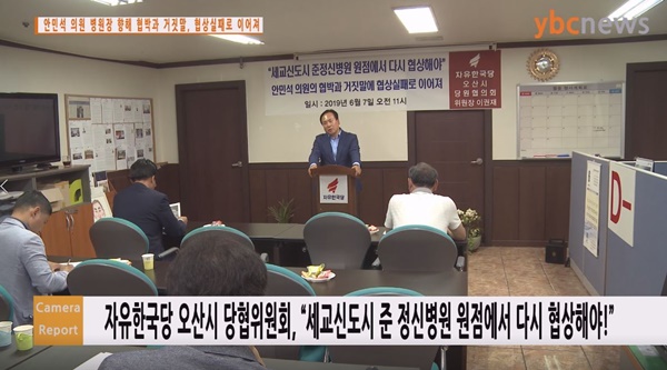 [Ä«¸Þ¶ó¸®Æ÷Æ®/ÇöÀåÃëÀç] ÀÚÀ¯Çѱ¹´ç ¿À»ê½Ã ´çÇùÀ§¿øÈ¸, ¡°¼¼±³½Åµµ½Ã ÁØ Á¤½Åº´¿ø ¿øÁ¡¿¡¼ ´Ù½Ã Çù»óÇØ¾ß!¡± - ¾È¹Î¼® ÀÇ¿ø º´¿øÀå ÇâÇØ Çù¹Ú°ú °ÅÁþ¸», Çù»ó½ÇÆÐ·Î À̾îÁ® |