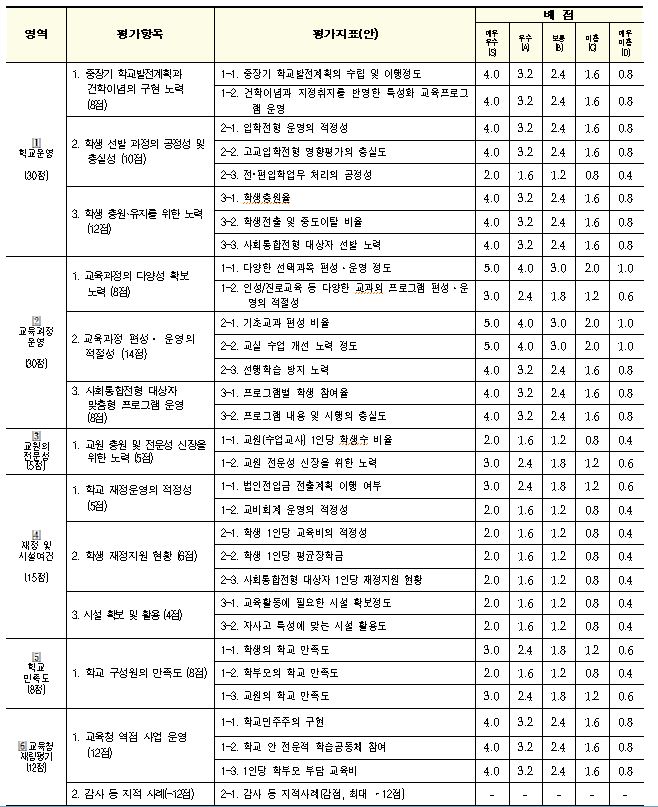 ÀÚ»ç°í ¿î¿µ¼º°ú Æò°¡´Â ÁöÁ¤ ±â°£ 5³â¿¡ ´ëÇØ Çб³ ¿î¿µ°ú °ü·ÃµÈ Æò°¡ÁöÇ¥¸¦ Áß½ÉÀ¸·Î ÀÌ·ç¾îÁö¸ç, ÀÚ»ç°í ÀçÁöÁ¤ ¿©ºÎ¸¦ ÆÇ´ÜÇÏ´Â Áß¿äÇÑ ±âÁØÀÌ µÈ´Ù. ¾È»ê µ¿»ê°í´Â ¡ãÇб³¿î¿µ, ¡ã±³À°°úÁ¤ ¿î¿µ, ¡ã±³¿øÀÇ Àü¹®¼º, ¡ãÀçÁ¤ ¹× ½Ã¼³¿©°Ç, ¡ãÇб³ ¸¸Á·µµ µî 27°³ ÁöÇ¥¸¦ Á¾ÇÕÀûÀ¸·Î °ËÅäÇÑ °á°ú ÀçÁöÁ¤ ±âÁØ Á¡¼ö(70Á¡)¿¡ ¹Ì´ÞÇÑ °ÍÀ¸·Î ³ªÅ¸³µ´Ù.