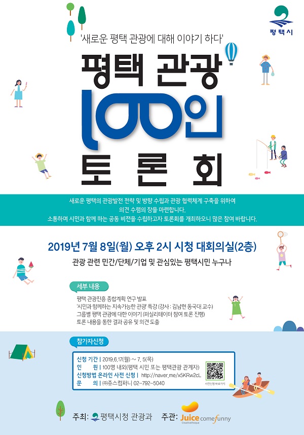 ÆòÅýÃ(½ÃÀå Á¤Àå¼±)´Â ¿À´Â 7¿ù 8ÀÏ ½Ãû ´ëȸÀǽǿ¡¼­ ½Ã¹Î, ´Üü, ±â¾÷, Àü¹®°¡, °ø¹«¿ø µî 100¿©¸íÀ» ÃÊûÇÏ¿© ÆòÅýà °ü±¤ÁøÈï Á¾ÇÕ°èȹ ¼ö¸³À» À§ÇÑ 100ÀÎ ¿øÅ¹Åä·Ðȸ¸¦ °³ÃÖÇÑ´Ù.