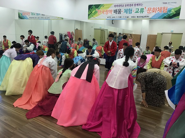 ÆòÅýñ¹Á¦±³·ùÀç´ÜÀº ÆòÅôëÇб³ ±¹Á¦±³·ùÇù·Â¿ø°ú ¿¬°èÇÏ¿© Çѱ¹¾î±³À°¼¾ÅÍ¿¡¼ Çѱ¹¾î¸¦ ¹è¿ì°í ÀÖ´Â º£Æ®³² À¯Çлý ¾à 120¿©¸íÀ» ´ë»óÀ¸·Î Áö³ 7¿ù 2ÀϺÎÅÍ 5ÀϱîÁö 4Àϰ£ ÆØ¼º±¹Á¦±³·ù¼¾ÅÍ¿¡¼ Çѱ¹¹®ÈüÇèÀ» ÁøÇàÇß´Ù.