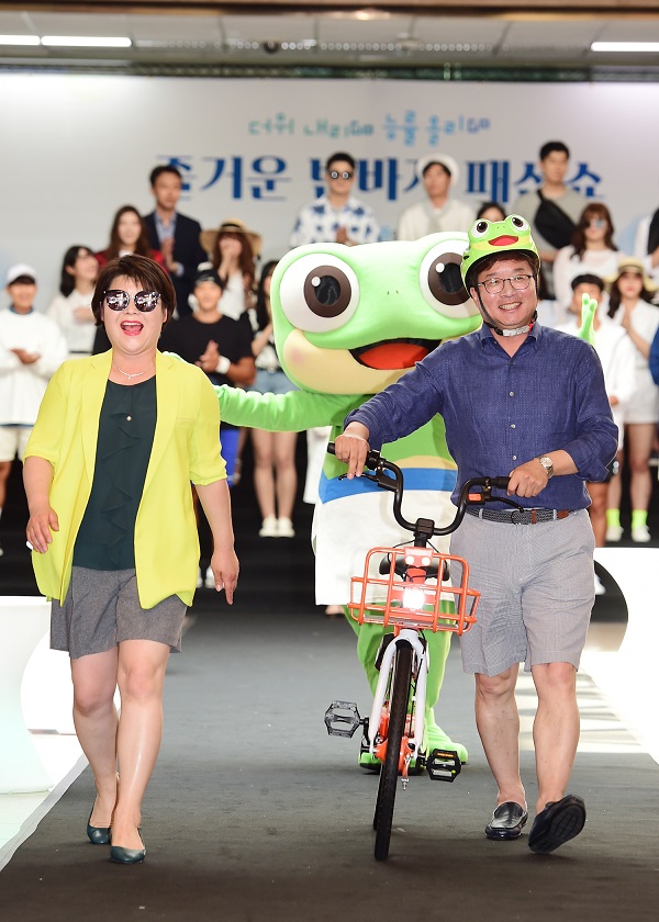 8ÀÏ ¼ö¿ø½Ãû º»°ü ·Îºñ¿¡¼ ¿¸° ¡®Áñ°Å¿î ¹Ý¹ÙÁö ÆÐ¼Ç¼î¡¯¿¡´Â ±æ¿µ¹è ¹®ÈüÀ°±³À°±¹Àå°ú ÀÌ»ó±Õ ¾ð·Ð´ã´ç°üÀ» ºñ·ÔÇÑ ³²³à °ø¹«¿ø°ú ¼ö¿ø½ÃüÀ°È¸ ¼Ò¼Ó ³²³à ¼±¼ö 22¸íÀÌ ¸ðµ¨·Î ³ª¼¹´Ù. ·Îºñ¿¡ ¼³Ä¡µÈ ·±¿þÀÌ¿¡ ¸ðµ¨µéÀÌ µîÀåÇÒ ¶§¸¶´Ù ȯȣ°¡ ÅÍÁ®³ª¿Ô´Ù.