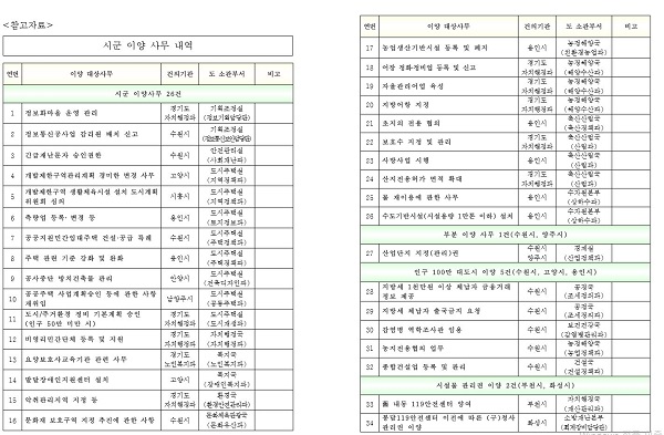 °æ±âµµ´Â 18ÀÏ ¿¸®´Â µµ-½Ã±º Á¤Ã¥Çù·ÂÀ§¿øÈ¸¸¦ ÅëÇØ ÃÖÁ¾ À̾ç»ç¹« ¸ñ·ÏÀÌ Á¤ÇØÁö¸é Á¤ºÎ¿¡ ¹ý·É °³Á¤À» °ÇÀÇÇÏ´Â ÇÑÆí Á¶·Ê‧±ÔÄ¢ °³Á¤ ÀÛ¾÷¿¡ µé¾î°¡ ½Ã±º¿¡¼ ¾÷¹« 󸮰¡ °¡´ÉÇϵµ·Ï ÇÒ °èȹÀÌ´Ù.