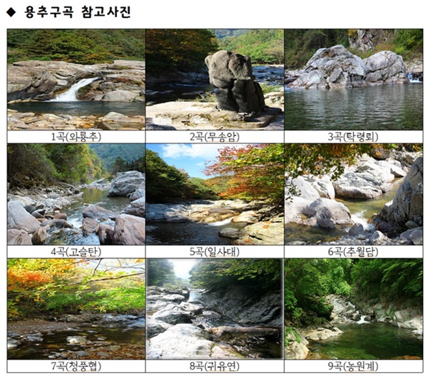 ¿ëÃß±¸°îÀº 1°î ¿Í·æÃß(¿ëÃ߯øÆ÷)¸¦ ½ÃÀÛÀ¸·Î 9°î ³ó¿ø°è±îÁö ¾à 6km ÄÚ½º·Î À̾îÁö´Â 2½Ã°£ °¡·®ÀÇ Å½¹æ·Î¸¦ µû¶ó °É¾î°¡¸é, ¸¼Àº ¹°°ú ±â¾Ï±«¼®, £Ǫ¸¥ ³ìÀ½ÀÌ ¾î¿ì·¯Áø dz±¤ÀÌ Àý·Î °¨ÅºÀ» ÀھƳ½´Ù. ƯÈ÷ 9°÷ °¢ ÁöÁ¡¸¶´Ù Ư¡ÀÌ ÀÖ¾î º¸´Â Àç¹Ì¸¦ ´õÇÑ´Ù.