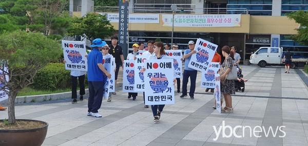 ³²¾çÁÖ½Ã, ȵµÀ¾ ÁÖ¹ÎÀÚÄ¡À§¿øÈ¸¸¦ ÁÖÃàÀ¸·Î ÀϺ» °æÁ¦º¸º¹ ±Ôź Áýȸ ¿¾î - ȵµ¼öµ¿ÇàÁ¤º¹Áö¼¾ÅÍ¿¡ Áý°áÇÏ¿©¡°NO ¾Æº£, ¿ì¸®´Â ÇѸ¶À½ ¸ðµÎ°¡ ´ëÇѹα¹¡±±¸È£¸¦ ¿ÜÄ¡¸ç ÇÇÄÏ ½ÃÀ§ ÁøÇà |