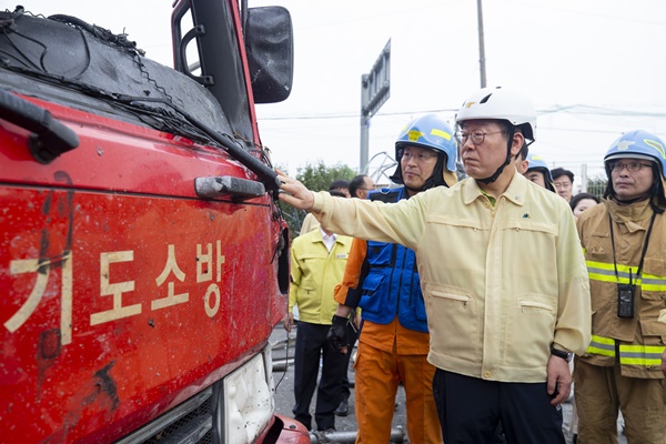 À̳¯ ¿ÀÈÄ 6½Ã°æ ÇöÀå¿¡ µµÂøÇÑ ÀÌ Áö»ç´Â ÀÌÇüö ¼Ò¹æÀ糺»ºÎÀåÀ¸·ÎºÎÅÍ Áø¾Ð»óȲ¿¡ ´ëÇØ º¸°í¸¦ ¹Þ°í ¡°À§ÇèÀ» ¹«¸¨¾²°í ÀÓ¹«¸¦ ¼öÇàÇÏ´Ù ¼øÁ÷ÇϽм®¿øÈ£ ¼Ò¹æÀåÀÇ Èñ»ýÀÌ ³Ê¹«³ª ¾ÈŸ±õ´Ù¡±¸é¼ ¡°À¯°¡Á· Áö¿ø¿¡ ¼ÒȦÇÔÀÌ ¾øµµ·Ï ¼º½ÉÀ» ´ÙÇØ ´Þ¶ó¡±°í ¸»Çß´Ù.
