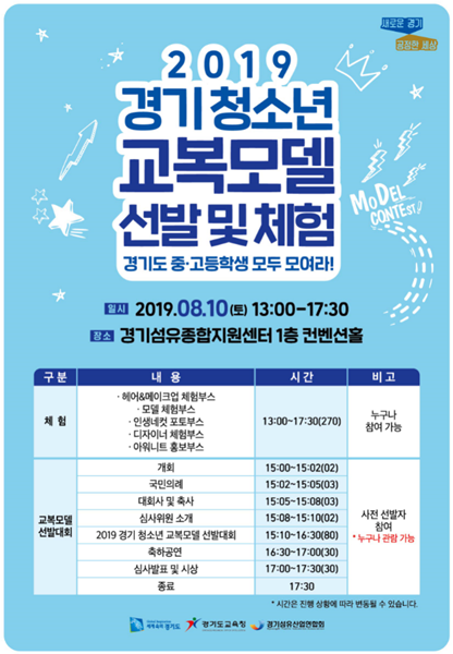°æ±âµµ´Â ¿À´Â 10ÀÏ(Åä) ¿ÀÈÄ 1½ÃºÎÅÍ °æ±â¼¶À¯Á¾ÇÕÁö¿ø¼¾ÅÍ(¾çÁÖ) ÄÁº¥¼ÇȦ¿¡¼ µµÀÇ ¼¶À¯¡¤ÆÐ¼Ç»ê¾÷À» ¾Ë¸®´Â û¼Ò³â Âü¿©Çü ¡®2019 °æ±â û¼Ò³â ±³º¹¸ðµ¨ ¼±¹ß ¹× üÇè Çà»ç¡¯¸¦ °³ÃÖÇÑ´Ù°í ¹àÇû´Ù.